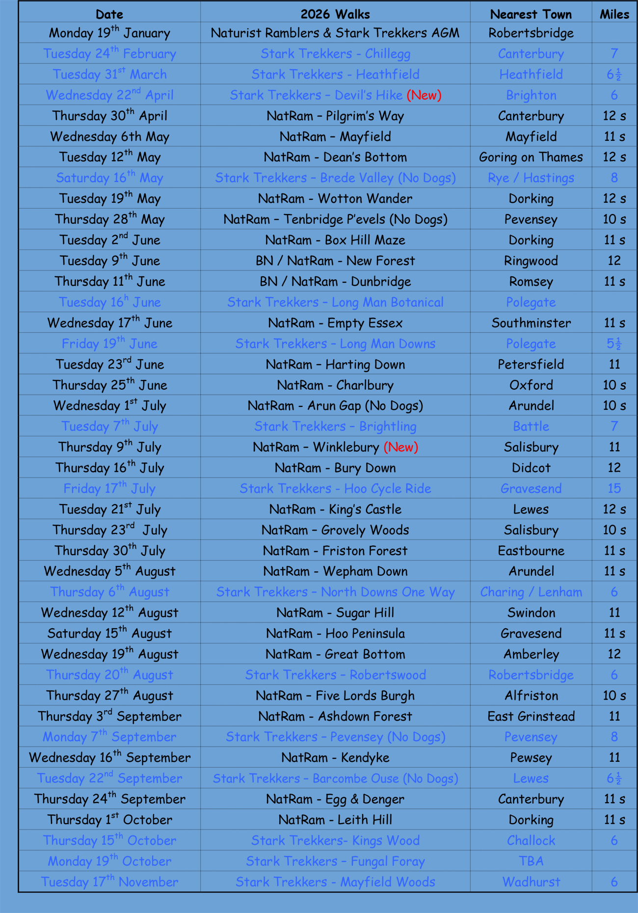 19th January - Naturist Ramblers AGM - Robertsbridge
